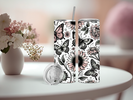Pink & Black Sunflower and Butterfly 20oz Tumbler