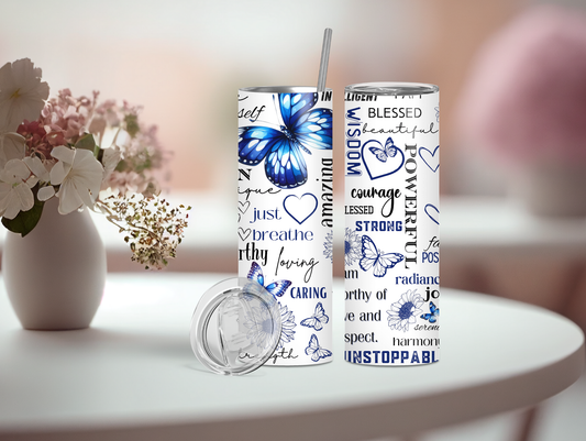 Blue Positivity Butterfly 20oz Tumbler