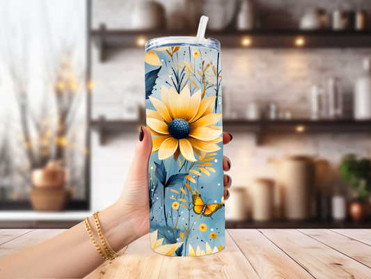 Navy & Yellow Flowers 20oz Tumbler