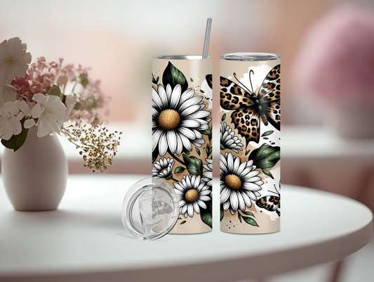 White Daisy and Butterfly 20oz Tumbler