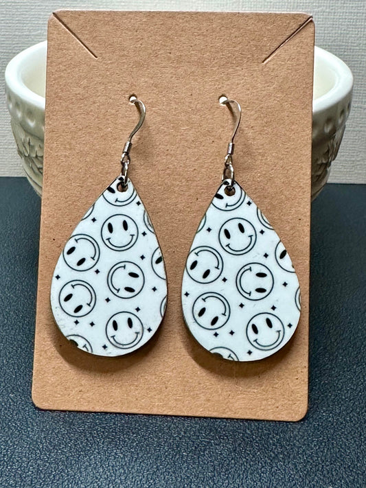 White & Black Smiley Face Teardrop Earrings