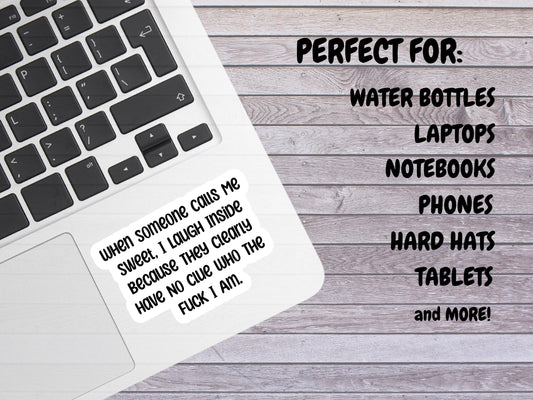 When Someone Calls Me Sweet I Laugh Inside Because They Clearly Have No Clue Who The Fuck I Am Sticker