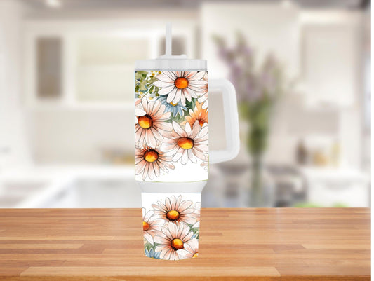 White Watercolor Daisies 40oz Tumbler