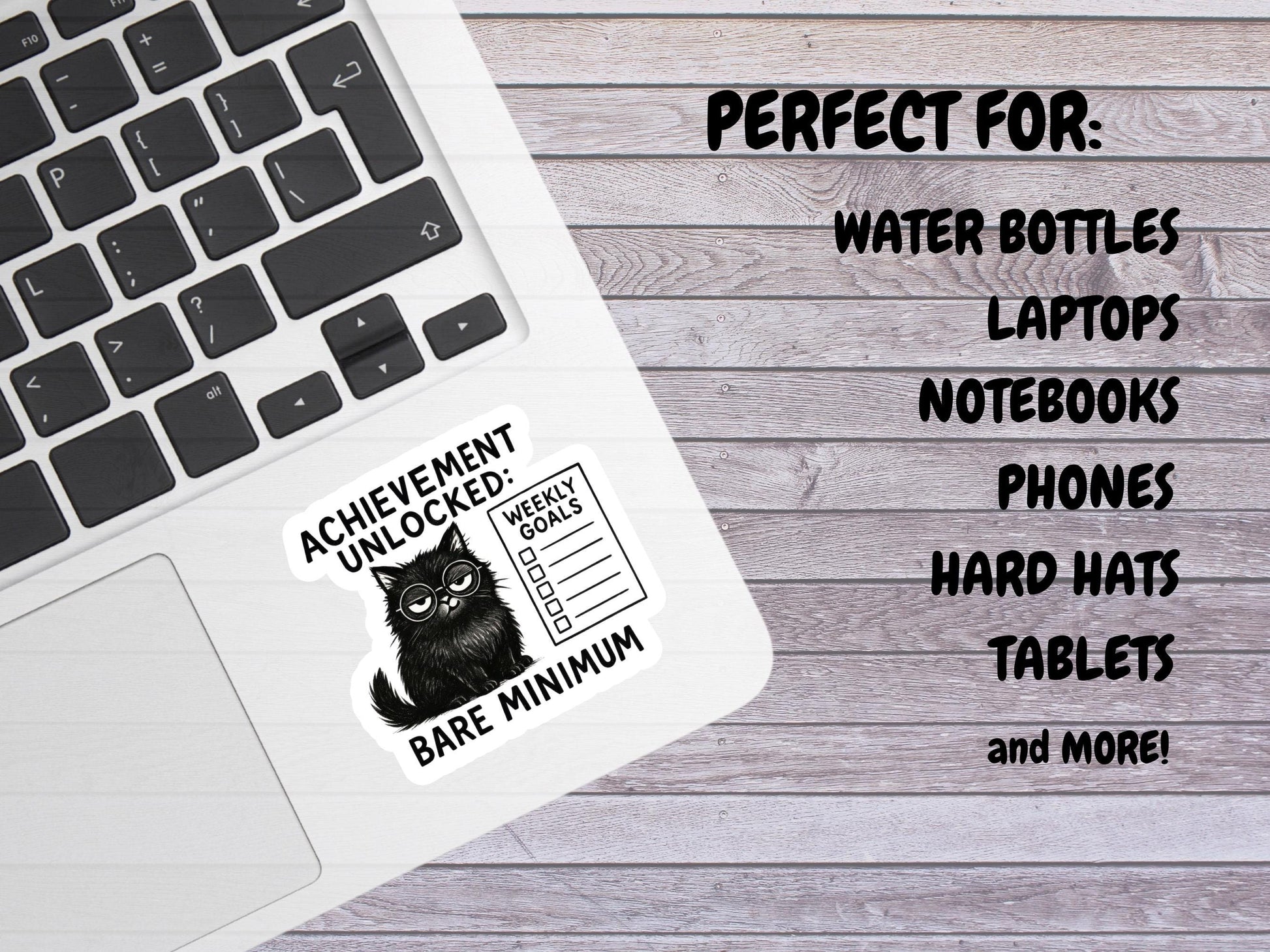 Achievement Unlocked Bare Minimum Black Cat Sticker