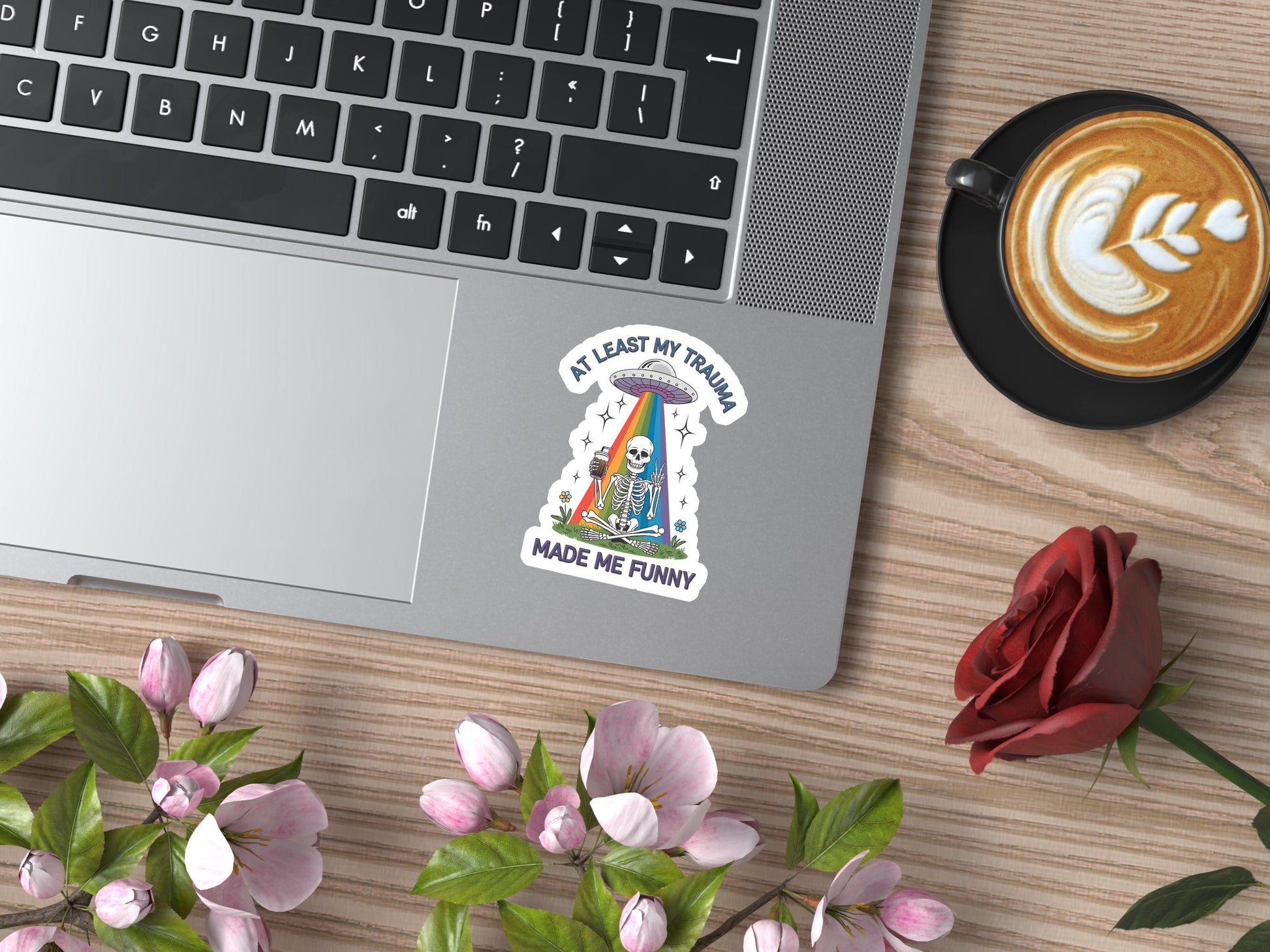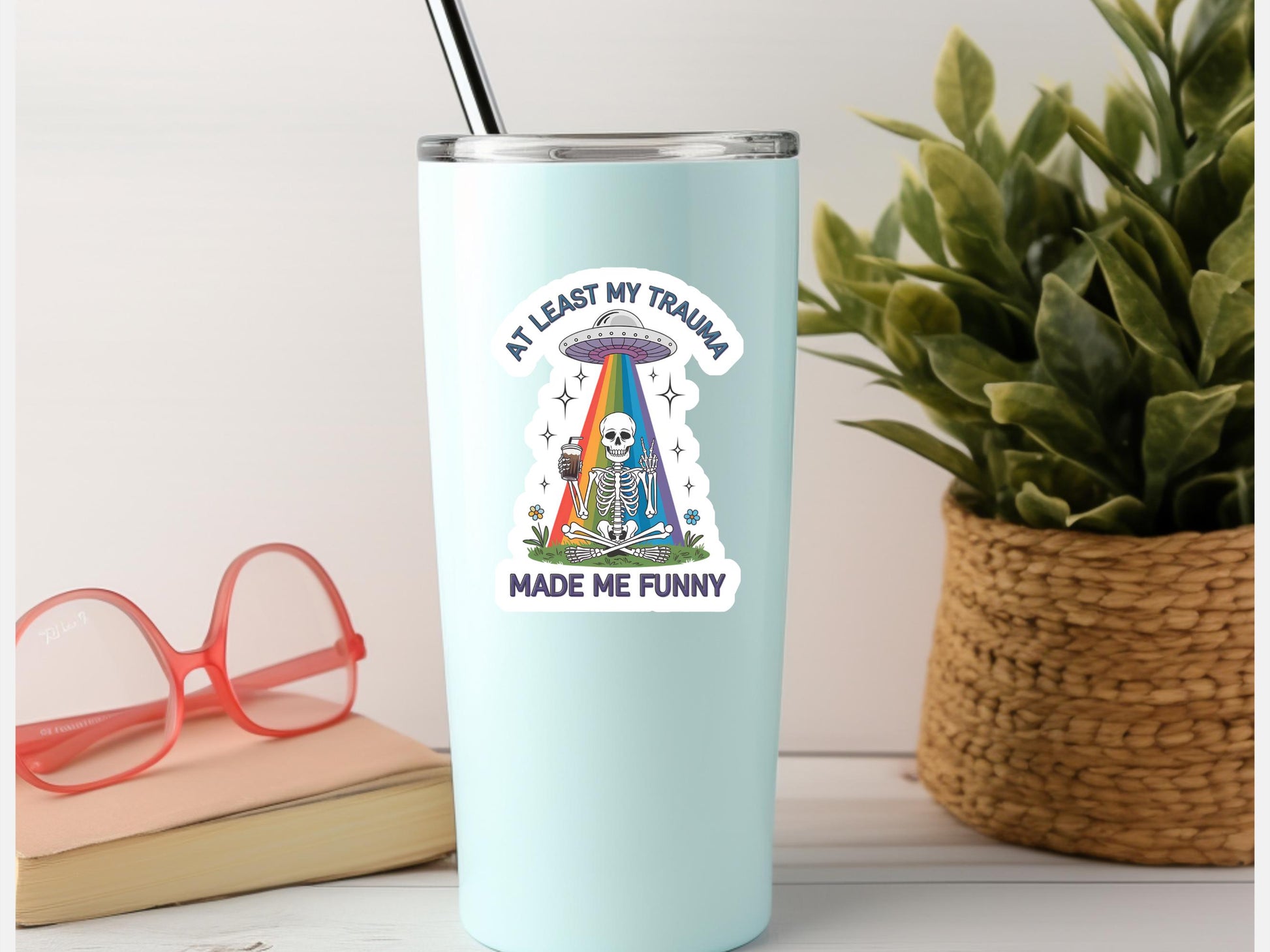 At Least My Trauma Made Me Funny Skeleton UFO Sticker