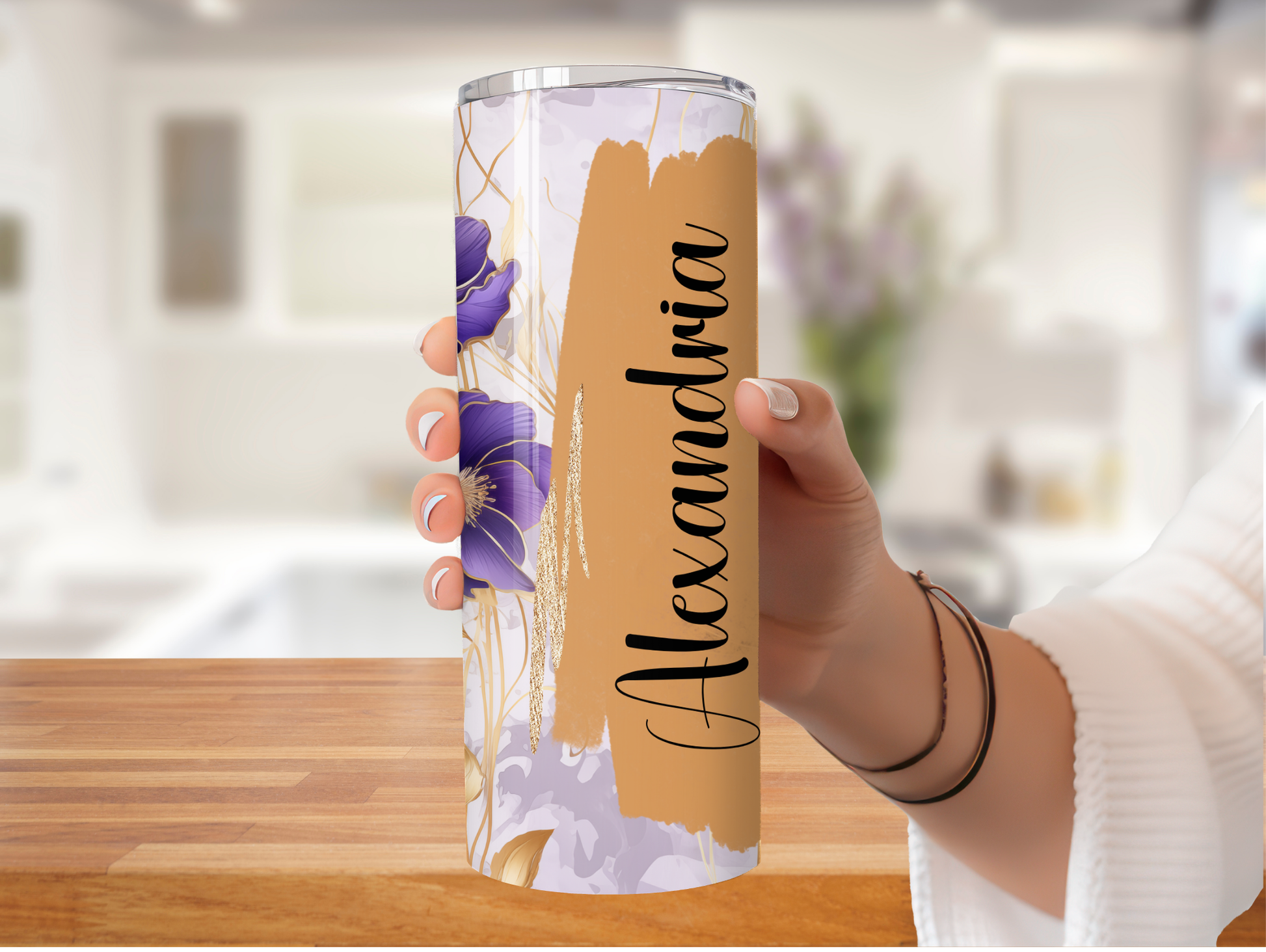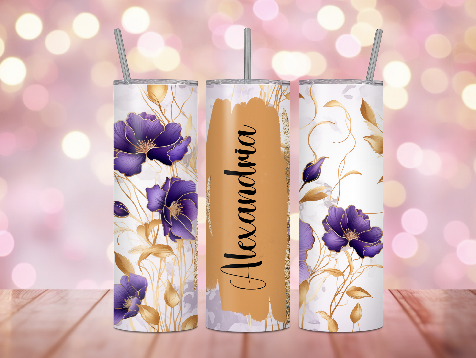 Dark Purple Floral Brush Stroke Personalized Tumbler