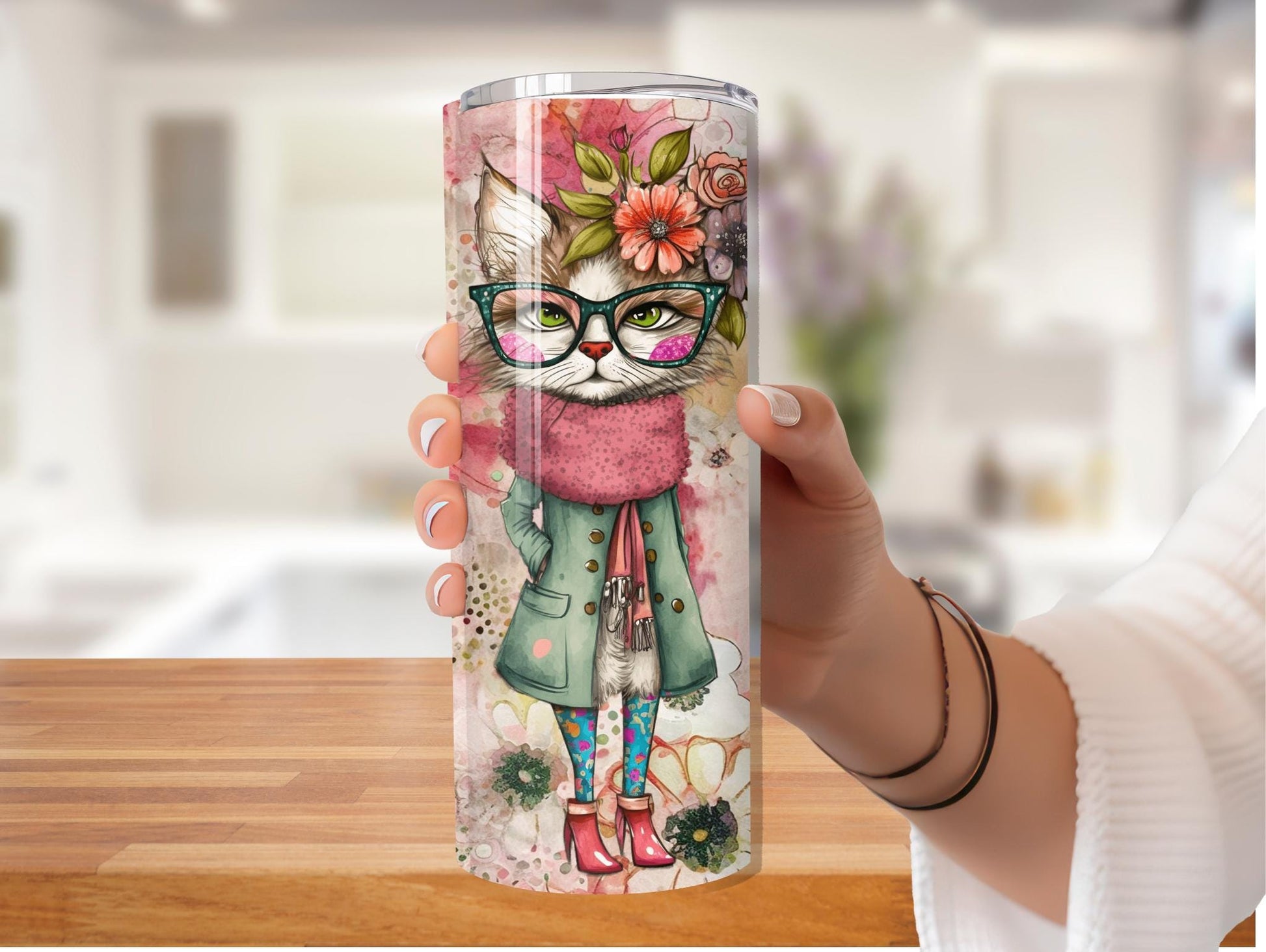 Wild And Wacky Watercolor Cat 20oz Tumbler