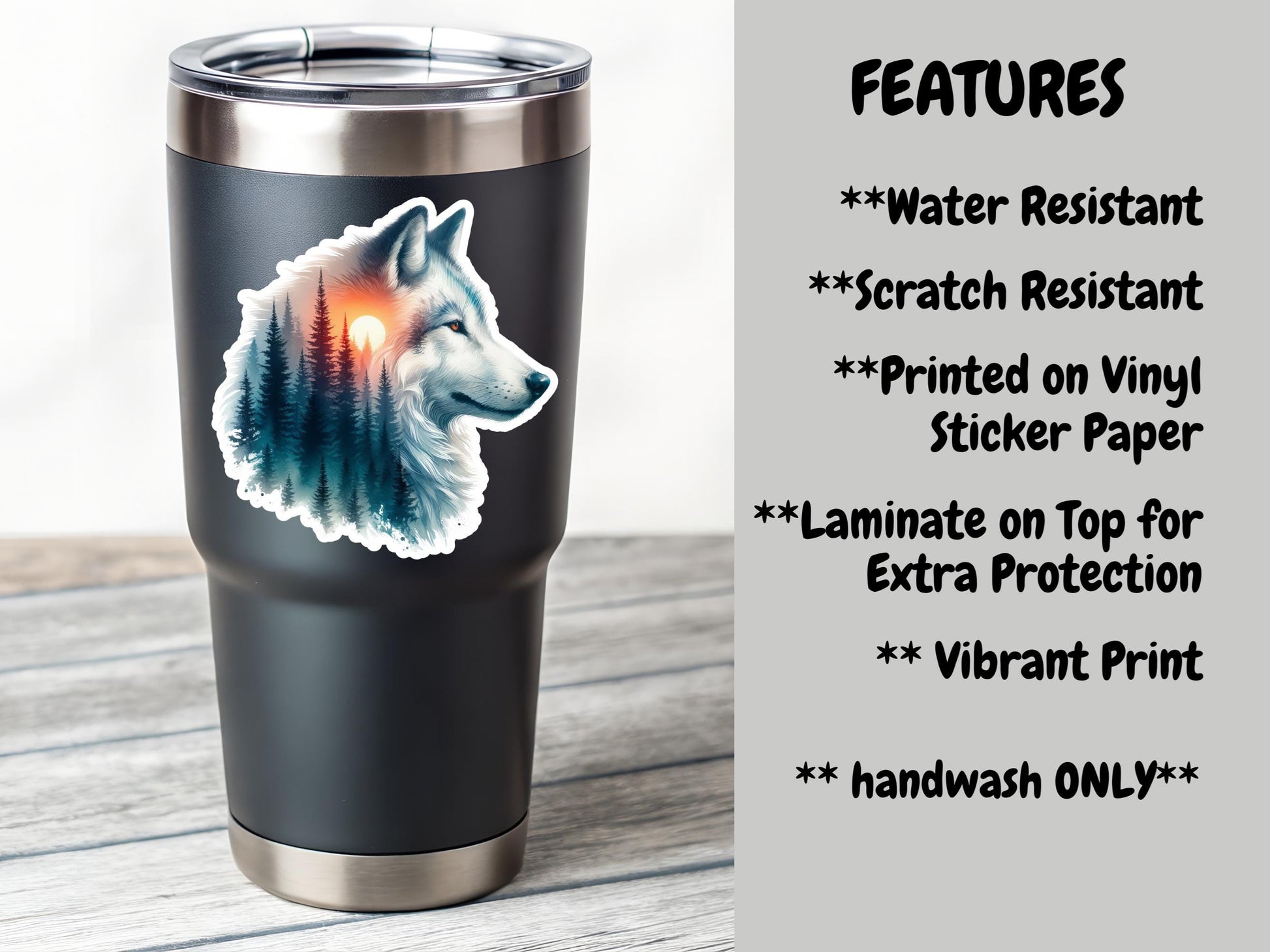 Wolf And Forest River Double Image Watercolor Sticker