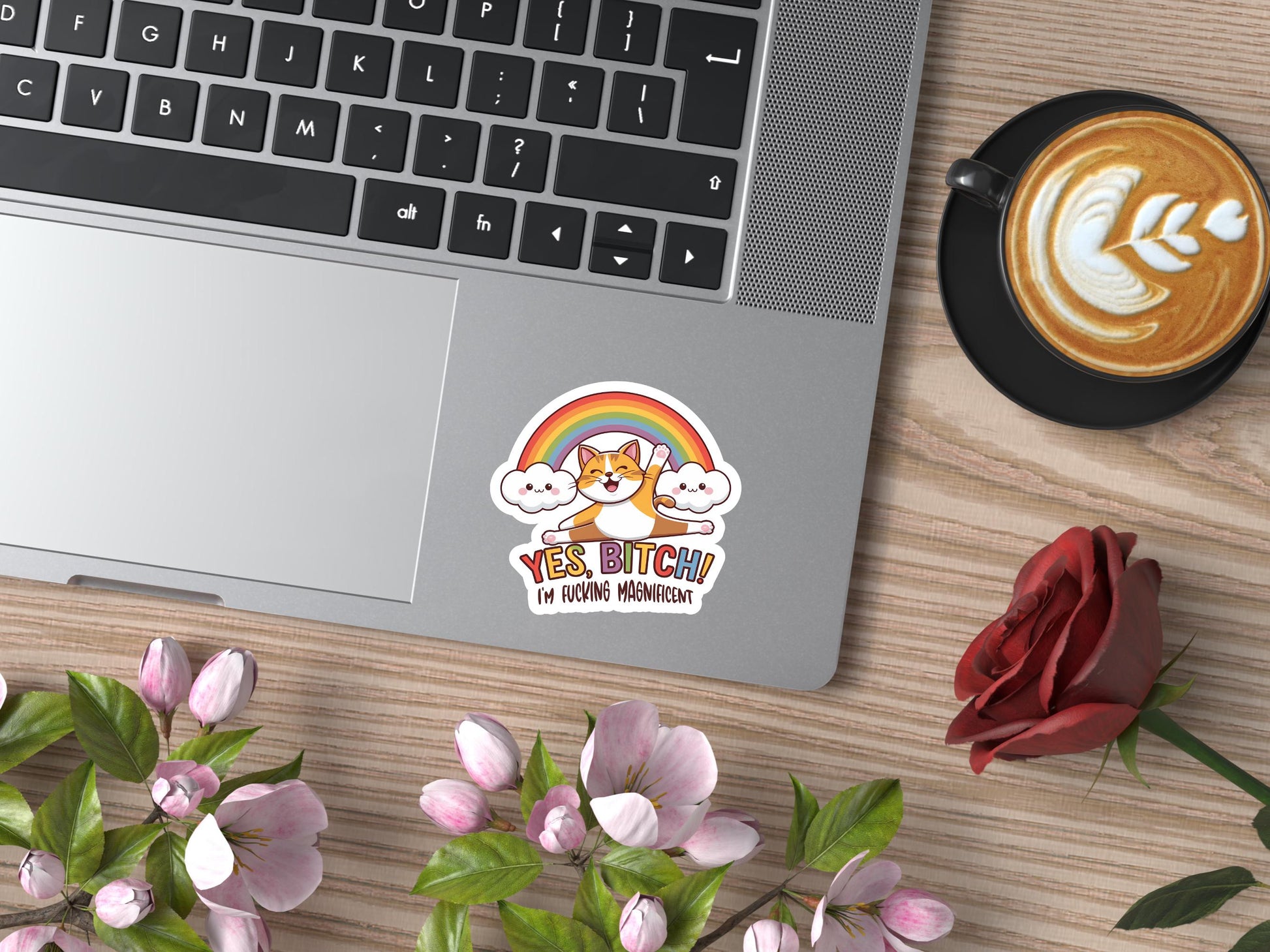 Yes Bitch I'm Fucking Magnificent Cat Rainbow Sticker
