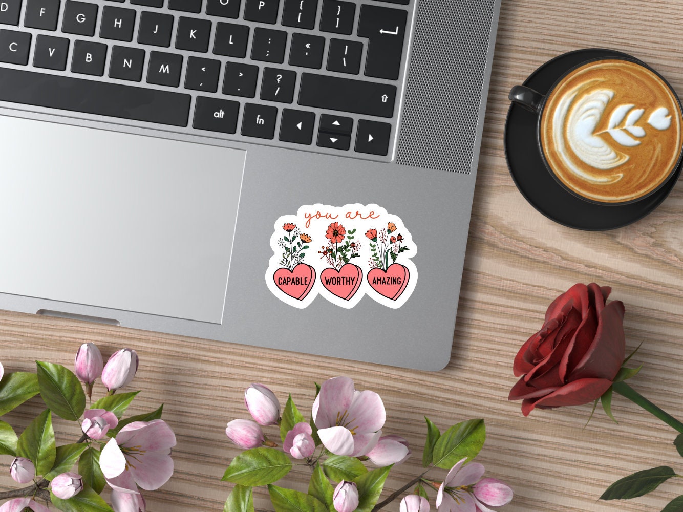 You Are Capable, Worthy, Amazing Flower and Heart Sticker